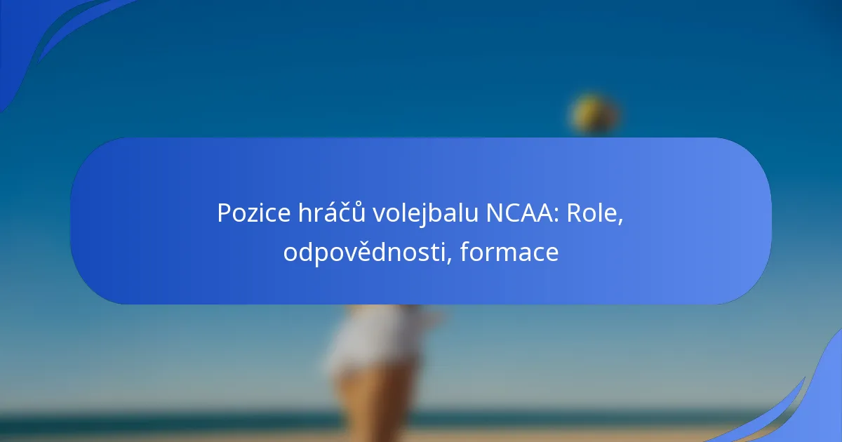 NCAA volejbal zahrnuje šest hlavních pozic, z nichž každá má odlišné role a odpovědnosti, které přispívají k celkovému výkonu týmu. Pochopení těchto pozic pomáhá hráčům a trenérům optimalizovat strategie a formace během zápasů.